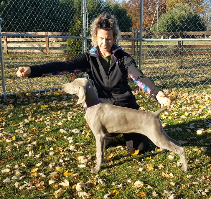 To top off the day, my friend brought her Weimaraner bitch for me to show in the adult match, and she ended up winning best in match wit me...a complete