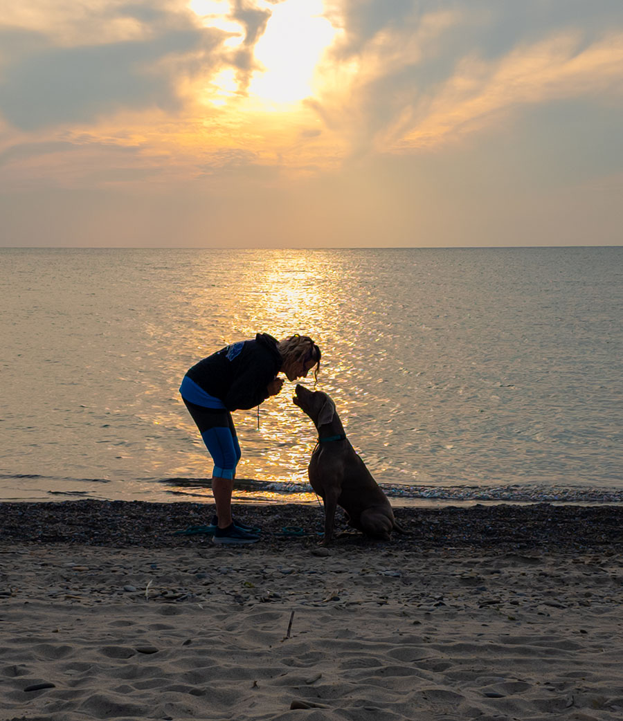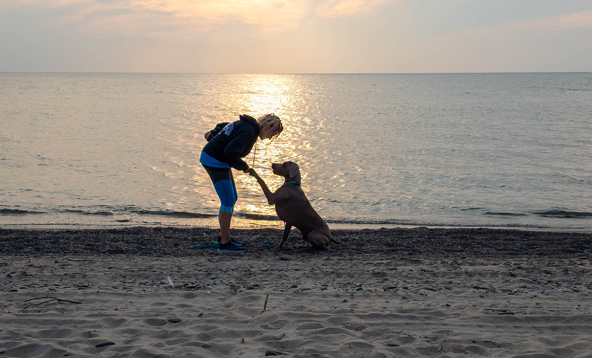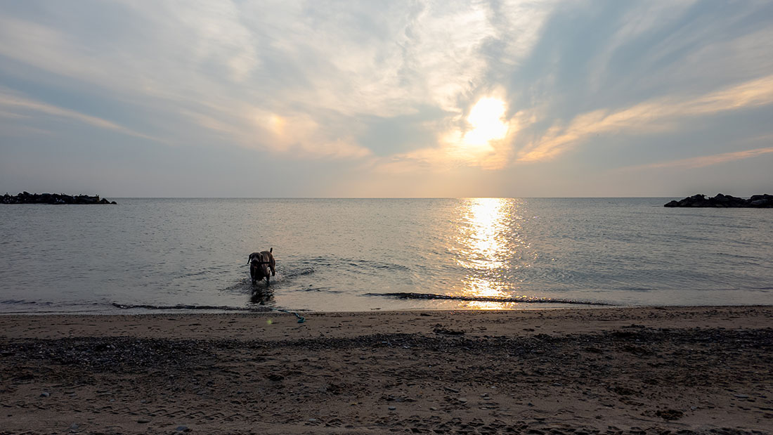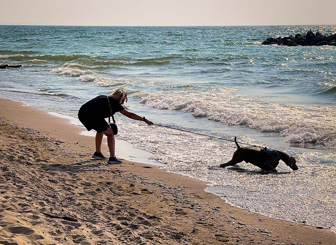 The trial got done early, so we headed to the beautiful Presque Isle to let the dogs walk and play a bit on the beach. It was wonderful being back on Lake Erie. Gorgeous, sunny evening, Dolphin had fun grabbing sticks and trying to pull me into the water.