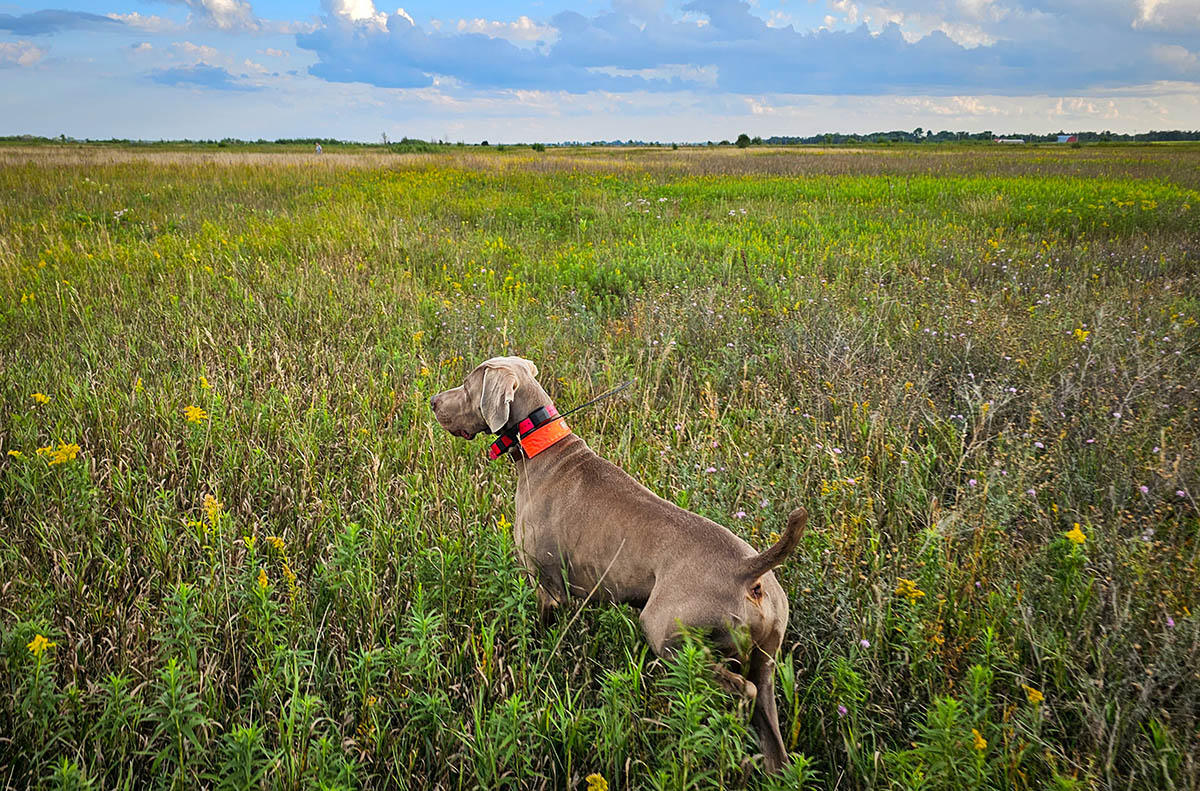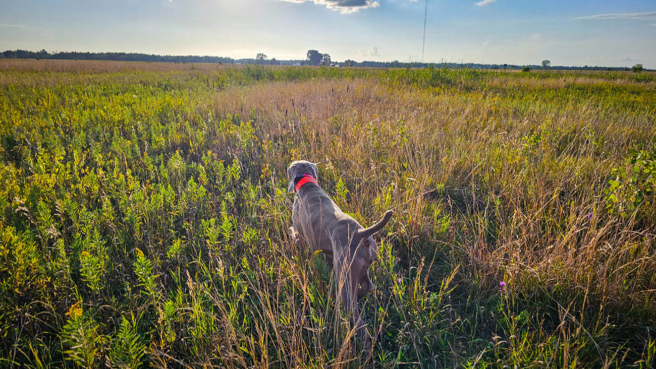 My friend and I took our weim boys to a ladies' bird dog clinic for three days in Wisconsin. I have never been to Wisconsin. It looks a lot like Ohio but with different weeds LOL!