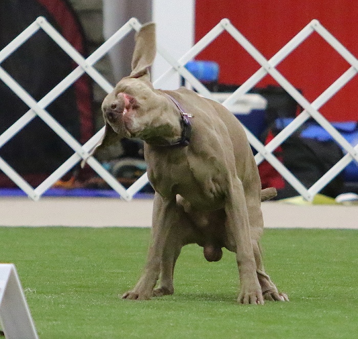 Oh the things we do for our animals! Between my farrier's schedule and my own, the only time I had to get him to come out and do my horses' feet was tonight at 10pm. Corky, of course, was business as usual, but Tango was a different story. When my farrier pulled his shoe off, he found a massive oozing abscess underneath the shoe...on the We decided to hold off on putting bar shoes on him (per the recommendation of the vet in Columbus). Instead, we are treating the abscess until it heals, and I am sending the x-rays to my farrier's father (who just happens to be Corky's repro vet!) to help us get a better idea of what type of shoes to put on him. There is hope! Oh, there is no doubt he has degeneration of the coffin bone, but the extent of the degeneration might not be progressed as far as the other vet thought. If that is the case, we may not have to do the 4 months stall rest (wouldn't that be Well, we made it to St. Louis! Technically, we are in Gray Summit, Missouri, home of Purina Farms. What a nice venue for a dog show and agility trial. There are grey dogs everywhere! The awards are gorgeous (and I am not just saying that because I painted and donated the agility award boxes!). My only goal is to get a Q on Friday, the day that is considered the Weim "national" trial. If not...I'd take a Q on Saturday or Sunday - I am determined to win a ribbon with a Weimaraner on it! with Pretzel, one can never be too sure of what is going to happen at a trial. Usually he is wild and disobedient, but every now and then he settles down, listens, and we have some awesome runs. I want one of those Well, 3 days of agility, and yes, 3 days of solid Saturday was marginally better. We actually did better in standard, but Pretzel blew ALL 3 of his contacts. I mean blew them in a big way - like launching off the front of the teeter before it even started to tip! we knocked 2 jumps in an otherwise decent jumpers run (the first one was my fault - I set him too close to the first jump to start). Sunday? Well...slightly better. Standard was better - I REALLY got firm with him on the dog walk and A-Frame and he got those contacts, but took the teeter so fast that he lost his balance and bailed. Jumpers was out last run...we were the last Weimaraner to go in the very last class of Nationals. Nothing but dust was left in the building! The course was tricky, but we actually started doing good! Then...he blew past a jump. No big deal, only 5 faults, so I stepped way to the side and called him back. Wouldn't you know it he went out o his way to back-jump the jump and then come to me. instant NQ. I feel a bit like I worked so hard all fall and winter for nothing. This show was a big goal of mine, and we failed on all aspects. For the most part, Pretzel barely listened to me, and that is a Day 38, and Corky is still pregnant! Her progesterone levels are normal, and everything looks as good as can me. My vet also looked at Tango's x-rays. Good news there also - he feels that the lameness was caused by the abscess and not the pedal osteoitis. He does see the bone degeneration, but doesn't feel it is bad enough to warrant lameness or 4 months stall rest at this time. So, my farrier (who happens to be his son) is going to put some special shoes and pads on him this week, and then I will turn him out and possibly start some light work with him if he remains sound. My farrier came out this morning and put some serious pads and shoes on Tango. I came out after work and turned him out in the indoor and had him trot around a bit. He looked Well we started off this agility trial with Time to Beat on Saturday morning, second dog in the ring. Yeah, it started off with a bang...not! Pretzel took the first jump and then raced to the exit gate to visit with the dog who had just completed their run and the owner was putting a leash on. I grabbed him, scolded him, got DQ-ed. One would think that my day was pretty much shot then, but I came back in many hours later and actually Q-ed in Standard! He was really really good! Jumpers went well also - no Q there but a good run where he listened to me. Sunday was even better, We actually finished the Time to Beat course without getting whistled off...a first for us! Yes, another Q in standard and a first place! Jumpers was even better, but he back-jumped a jump he had run past and we got an NQ since you cannot have an off-course in Jumpers. Heck, who cares? I was THRILLED with his behavior! He had some really great focus on me, even before our runs he was really staying "on" me while waiting to go. Now, don't get too excited. This just follows the normal Pretzel pattern - he has months and months of horrible, unfocused, wild agility runs, then throws me a token weekend of decent runs just to keep me interested. I fully expect him to revert back. I have two CPE trials scheduled for June, then no more agility trials until fall or winter. It's time to seriously re-train. Tango looked completely sound today. I didn't work him, just let him wander around the indoor at his own pace. Not getting excited, just watching him day by day...will give it a few more weeks and then try some gentle free-longeing at the trot and see what happens. Today we headed to Maumee, Ohio for a conformation show. I am only doing the show today, since I have graduation tomorrow. This show offered Owner-Handler, so it was an important one for us to try and get points to get us back into the top 10. Pretzel showed great, despite the heat. I do love showing outside. There were only 2 special bitches and Pretzel, so we automatically got Best of opposite behind one of the top Weim bitches in the country. We also ended up getting Best of Breed owner/Handler, which was HUGE! We went back into group and earned a group 3...so in total we gained another 15 owner handler points. Yes!!!!!!! Something is actually going right for me with these animals for a change. Here's hoping we can keep it up...