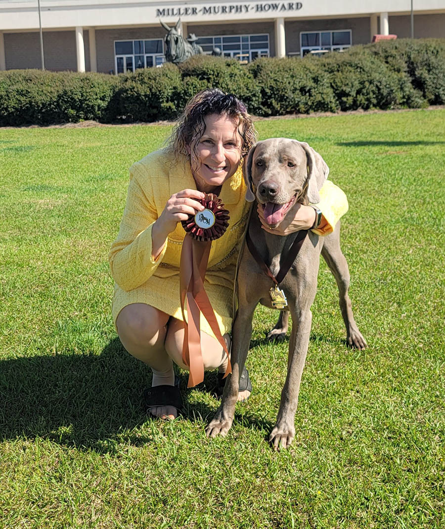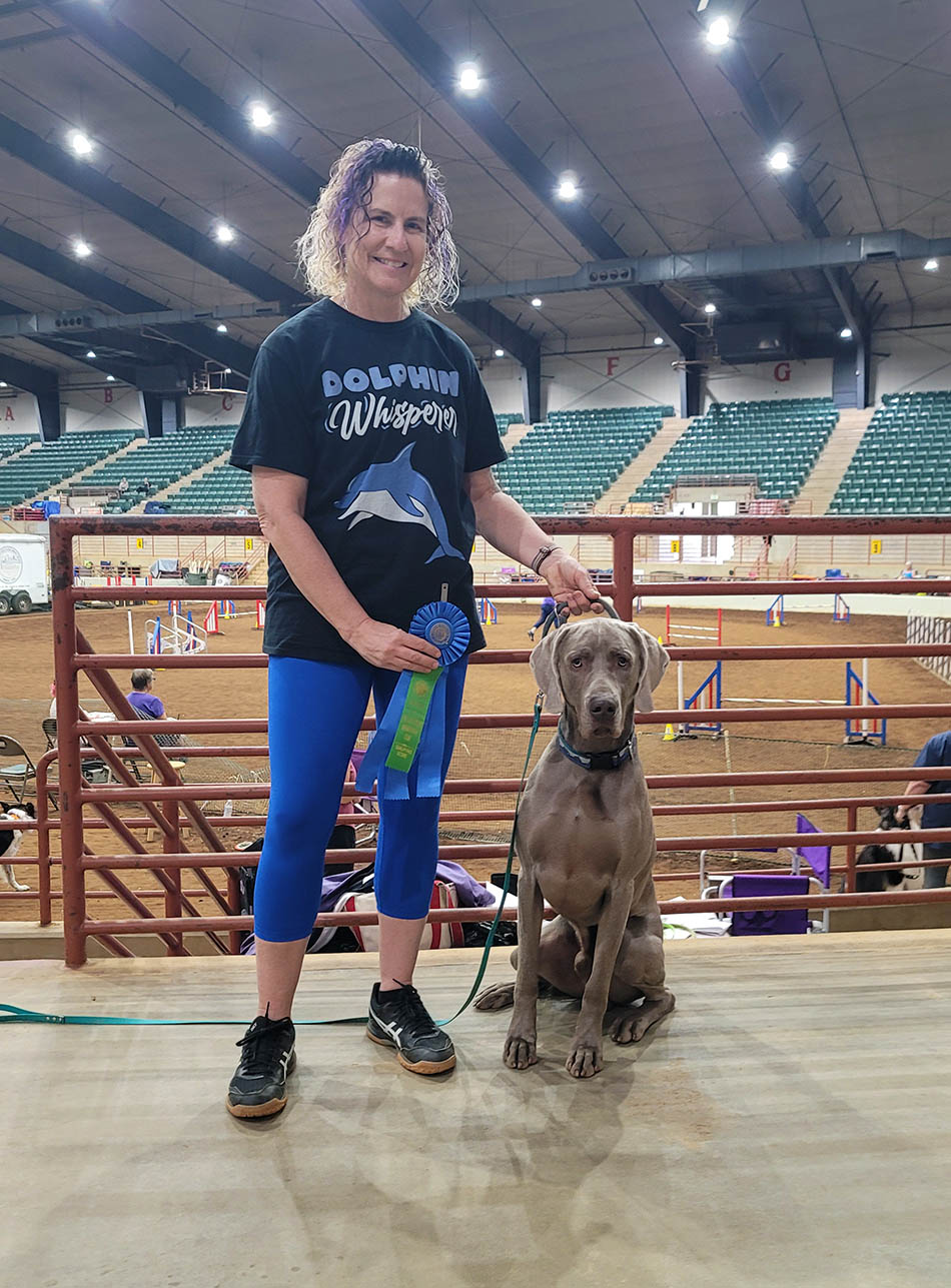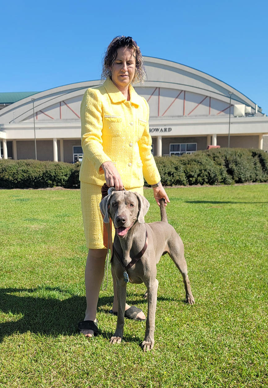 Today I took Dolphin and Pizza to a Weim specialty show in Wilmington. Pizza hasn't been shown since October, and Dolphin (other than UKC) hasn't either. This was Dolphin's last sweepstakes class as he turns