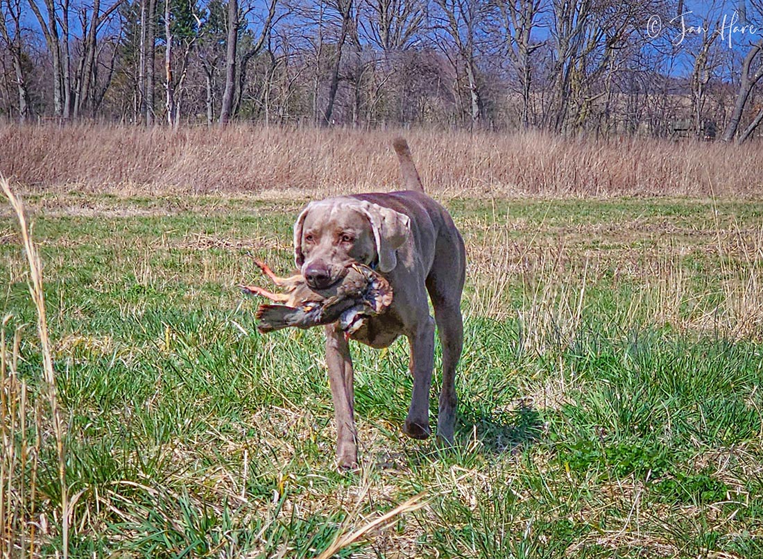 Noodle was awesome, had an amazing long-distance honor all on her own...it was outstanding. Of course, she was in training mode and had zero adrenaline going, so we will see if that can carry over at an actual event. We worked one bird, and it was shot really messy so her retrieve was not the best. I worked her on a freshly killed bird a little later and she did a direct retrieve straight to hand, so we ended with that good note. I notice she is getting a little "hoppy" on her honor...when the other dog gets released for the retrieve she jumped forward about a foot and I had to correct her. I love her enthusiasm, but she has to also have a little self-control to go with it.