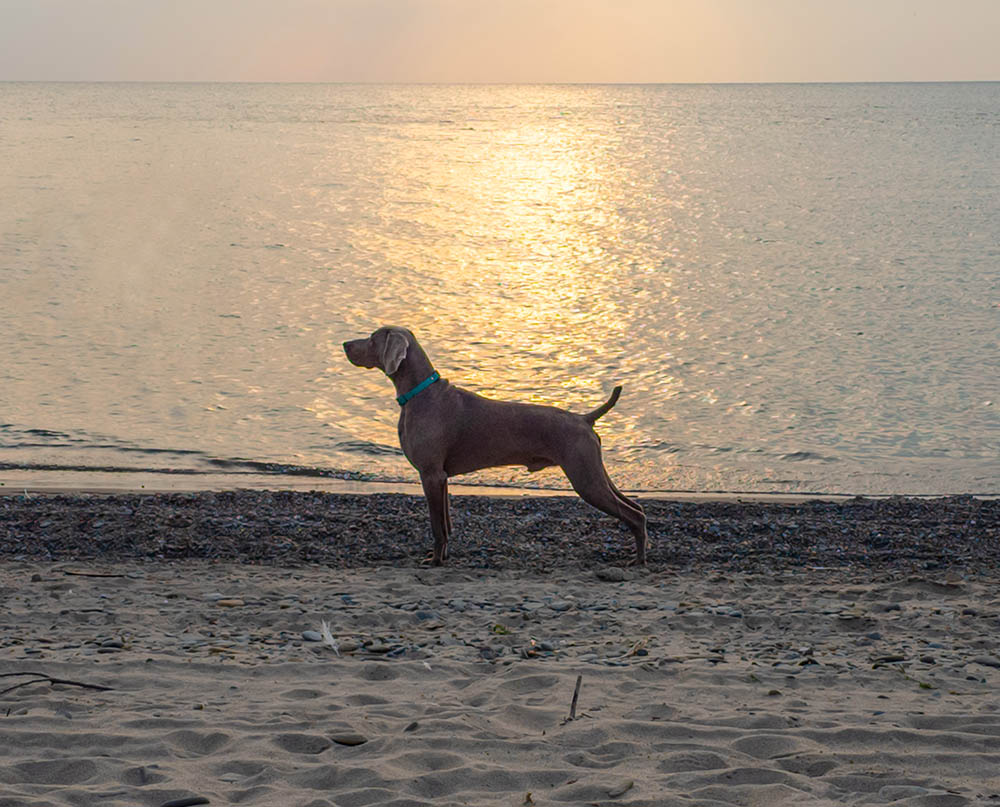 The trial got done early, so we headed to the beautiful Presque Isle to let the dogs walk and play a bit on the beach. It was wonderful being back on Lake Erie. Gorgeous, sunny evening, Dolphin had fun grabbing sticks and trying to pull me into the water.