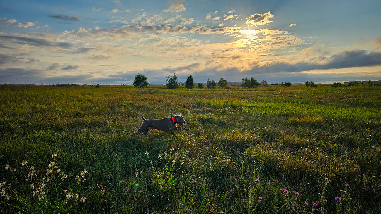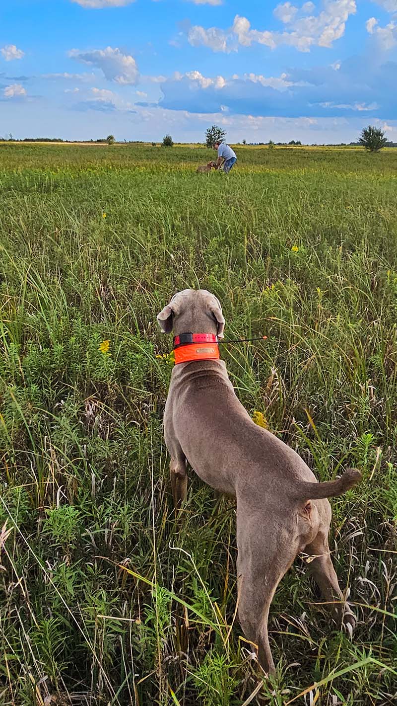 My friend and I took our weim boys to a ladies' bird dog clinic for three days in Wisconsin. I have never been to Wisconsin. It looks a lot like Ohio but with different weeds LOL!