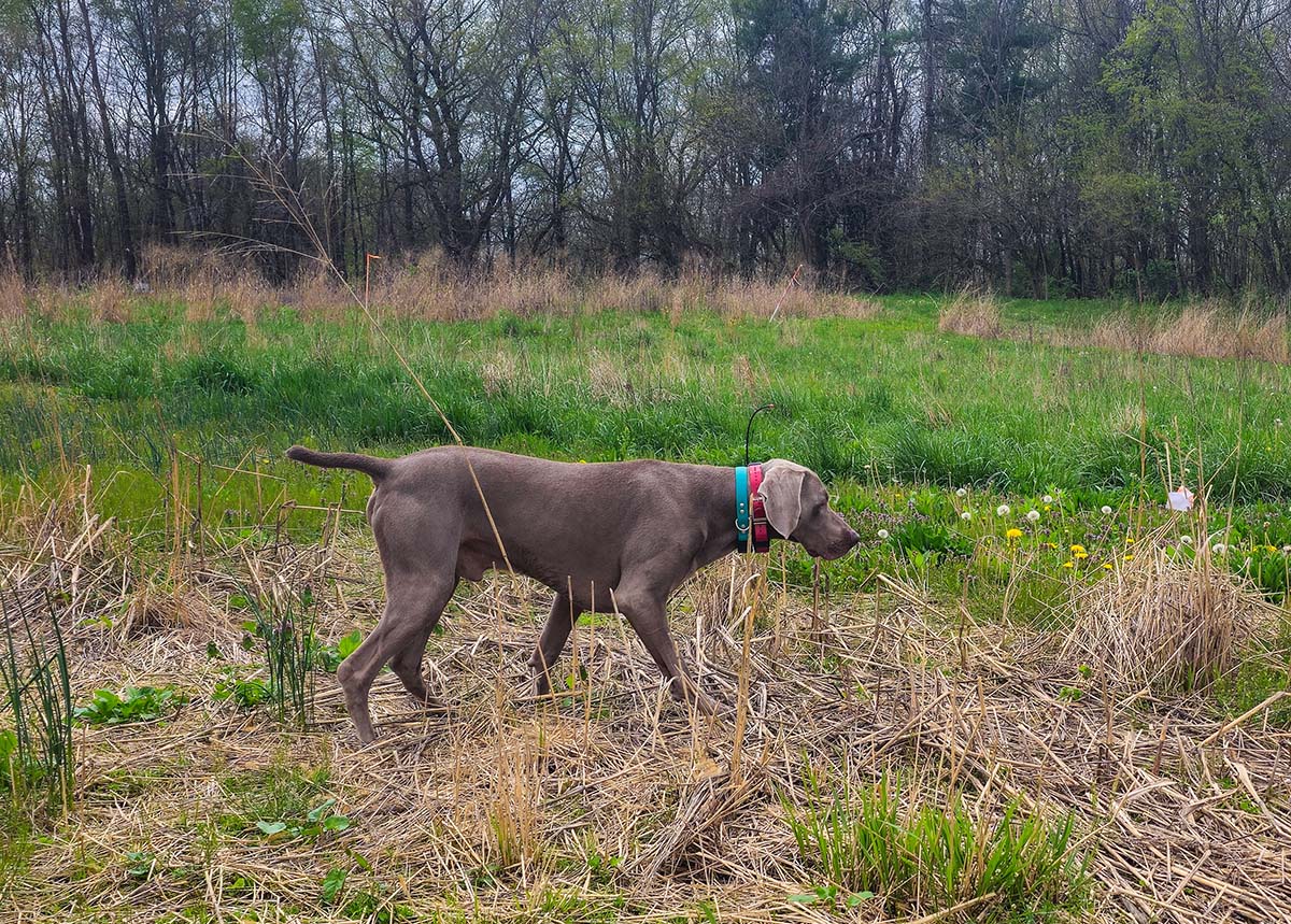 Dolphin was great, and rotten, but way more great than rotten so it's all good. He was solid on his points, and through the actual gunshot (bird was missed so no fall). He had a couple OK honors, he stopped and I had to remind him to stay put and not turn towards me. We had one pretty nice stop to flush, where he was getting birdy and the bird flushed up wild and he stopped and waited for me (progress!). However, his training partner/bracemate went on point on a loose bird in the trees and Dolphin went right past him on point and went on point in front of him - a stolen point. Bad boy! We didn't do any retrieving today. I really don't have a training plan for him right now and that makes me feel very unsettled.