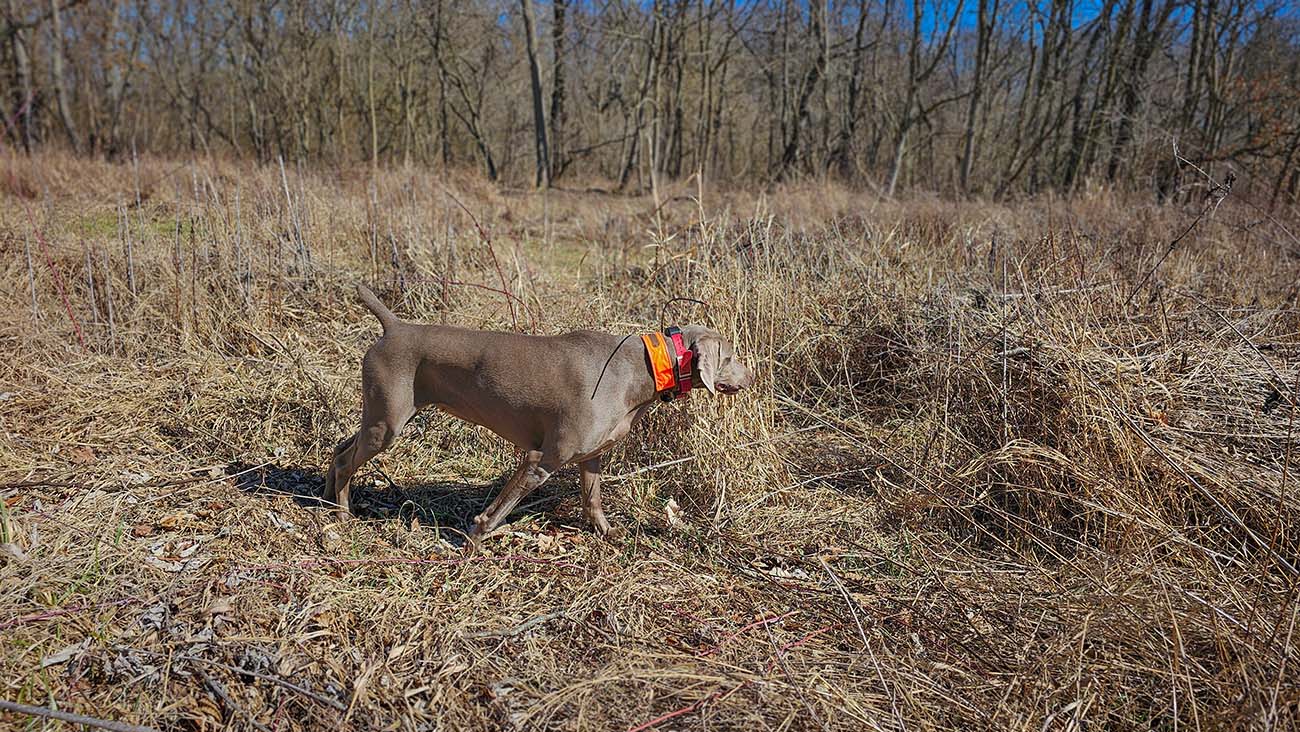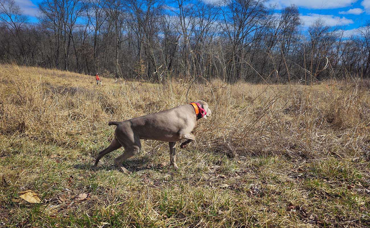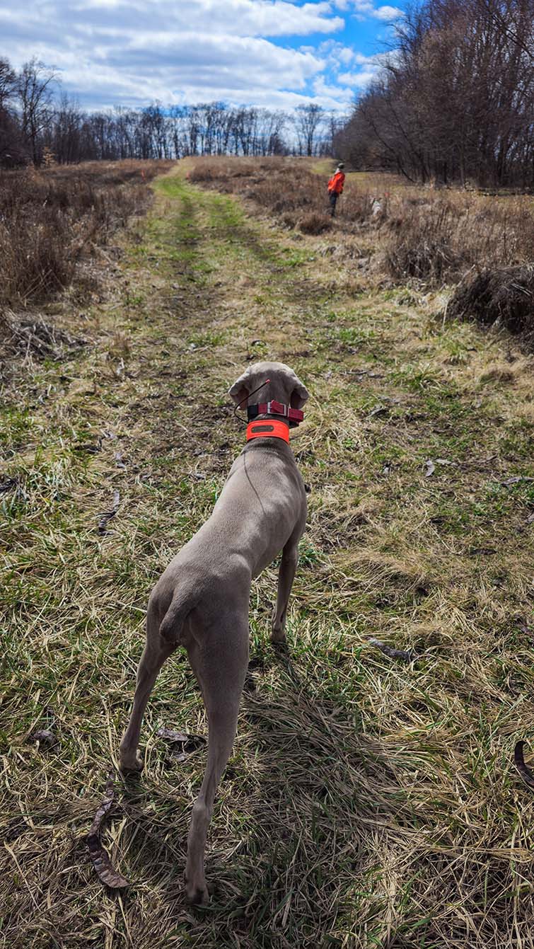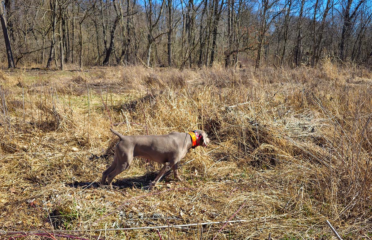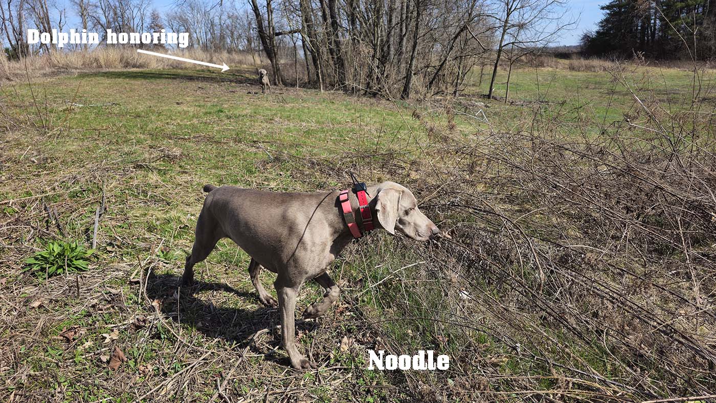 I took the day today to just get the dogs out and have some fun with no training. Today it was Dolphin and Noodle's turn. They had a great time running the fields. As what usually happens, even though I intended to do no training, sometimes training happens. Noodle went on point (her usual paranoia, as there was nothing there), and lo and behold Dolphin honored her from a good distance. Shocked the heck out of me, for sure! You just never know with this boy.