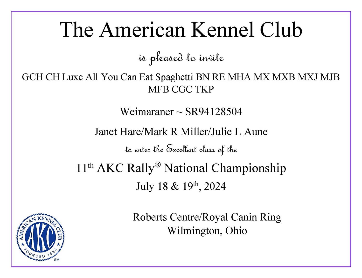 For the second year in a row, Noodle qualified for the AKC Rally National Championships! This year, she qualified in Excellent. I don't think we will attend this year, but it's cool to have qualified.