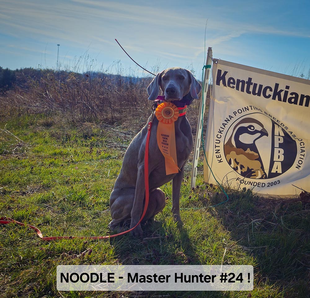 Noodle was even better on Sunday. We had two beautiful honors in the backfield, and a wonderful one in the field. I decided to trust my girl and my training, and I just let her run on ahead of me (and if you knwo Noodle, run on ahead means sprinting at full speed!). She hit her brakes when she saw the other dog on point, I was so darn proud...proud of us both! Getting here was definitely a team effort. Two more master hunter passes on her record, and a billion buckets of fun. Noodle got to run with a couple byes in senior hunter, so she had a load of fun today. I just love this girl - my ride or die!