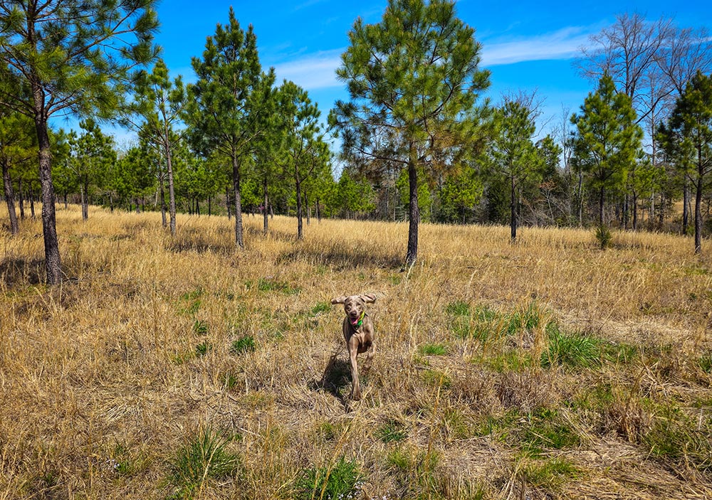 I had the entire day free, and it was 75 and sunny! Gotta love North Carolina weather. My friend offered her hunting property for me to take Pizza and give her some freedom. It was a little over an hour away, but oh was it worth it! We walked for miles in the most beautiful tree-filled fields. I was careful to not liet Pizza get overheated, and it was almost like she knew. She monitored herself and we just had a casual walk through the fields for an hour or two.