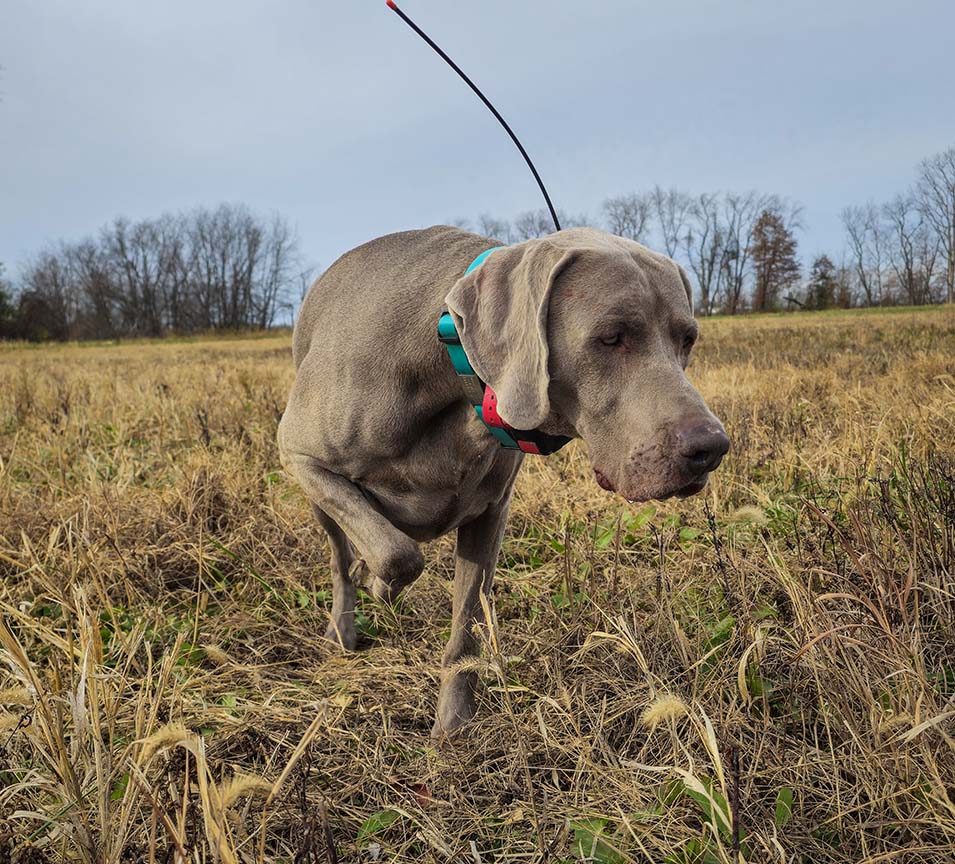 After I was done running Noodle, I got Dolphin back out and threw a dead bird for him. When he started getting rough with the bird, I walked up to him and let him know he was wrong, and took the bird from him. I threw it one more time, and we got a semi-successful clean retrieve, so I decided to stop on a good note.