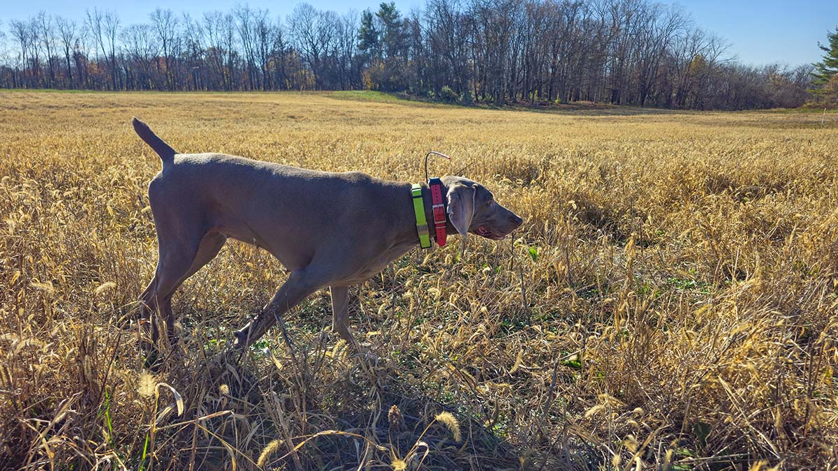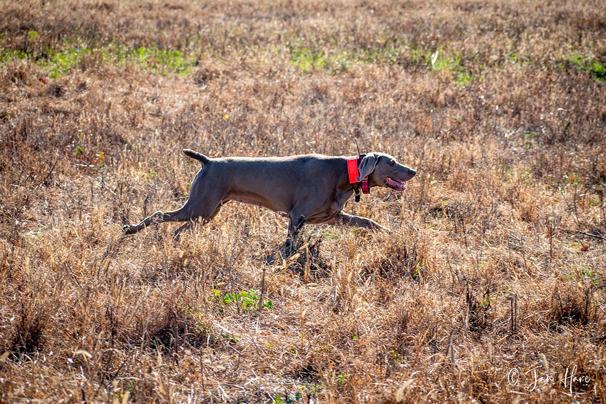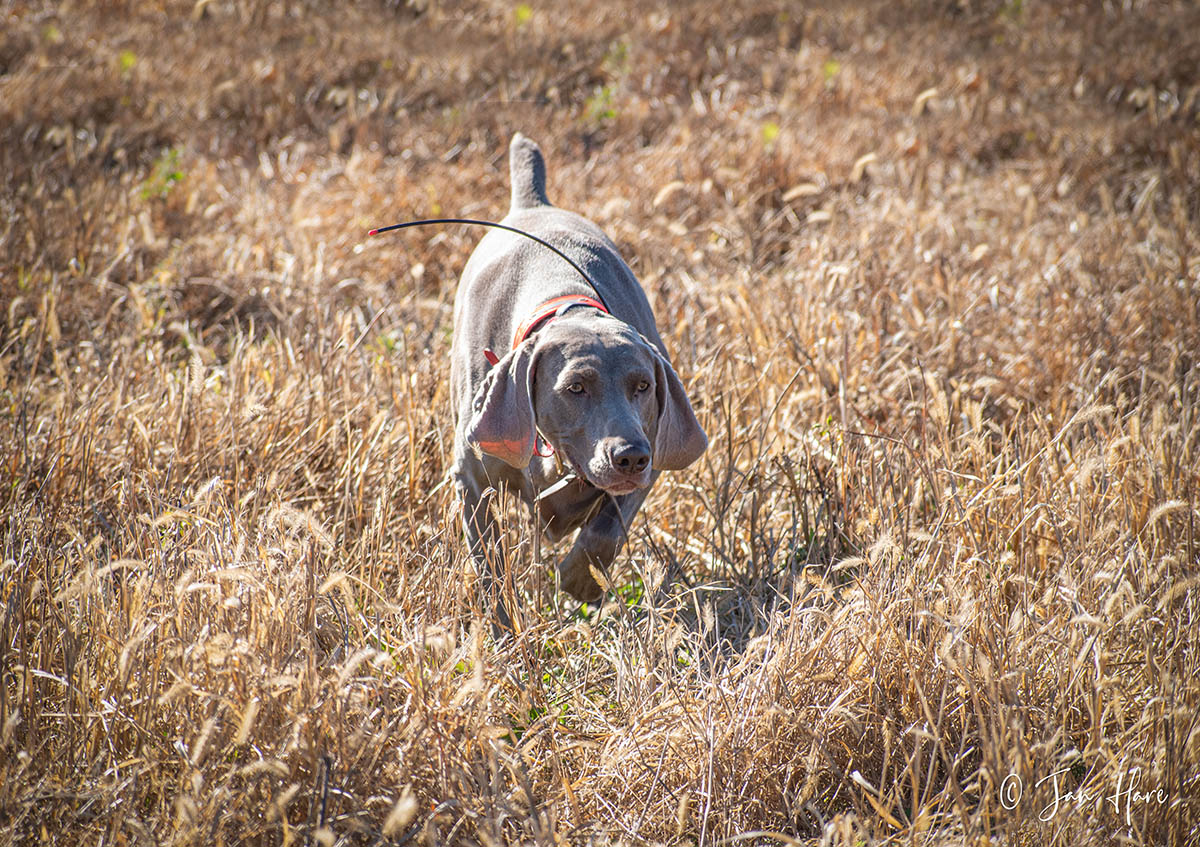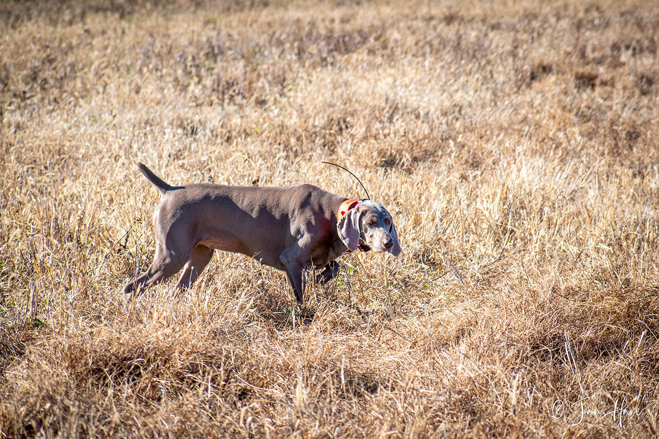 Dolphin pointed two more birds. He was steady to wing and shot - and beautifully so. However, on the next bird, it was missed and flew off. I threw a dead one for him to retrieve, he ran out and picked the dead one up and then continued running out looking for the bird that had flown off. I never was able to get him to bring the bird back (he eventually dropped it). I picked the bird up and we did another retrieve in the opposite direction and he went and got the bird, but dropped it multiple times and was really rough on the bird.