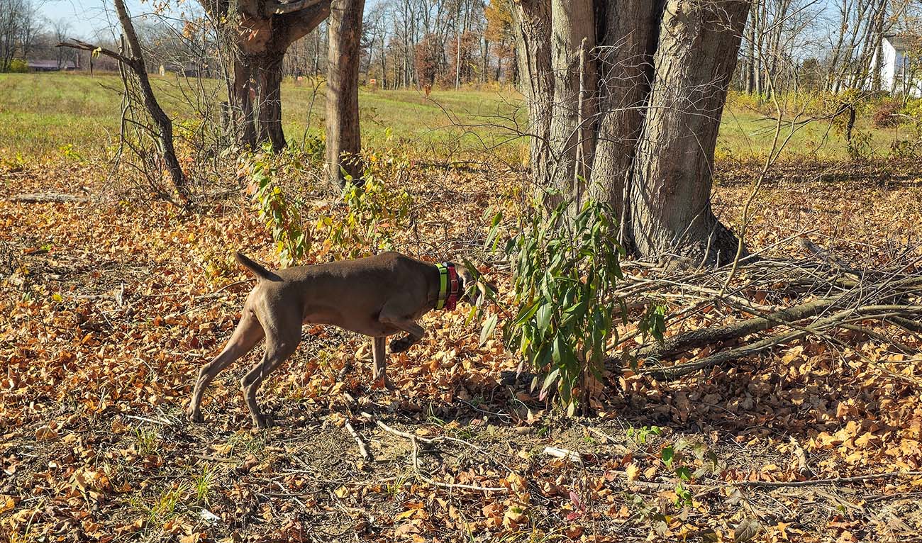 ON Wednesday I took Dolphin out again, with Noodle. We ran for about 30 minutes. It was a great couple of days exploring new trails in the woods and just letting them run in the fields without any pressure of birds (though they certainly looked hard!). The temperatures drop this weekend to well below freezing and it looks to stay that way for a while, so that makes training a bit more uncomfortable for me.