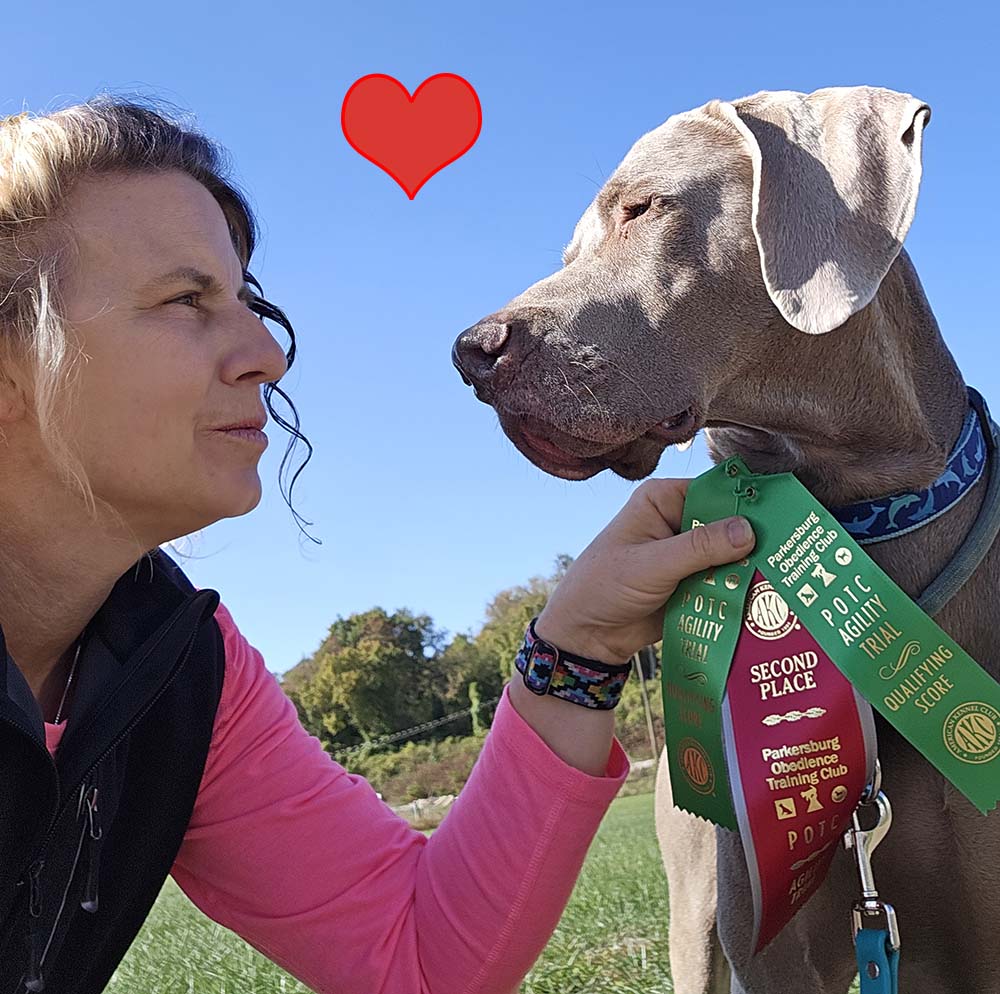 Pretzel and I did agility (he was so wild and out of control in his younger years, but oh so much fun!), rally and obedience (he hated heeling unless I cheered him on, but he did it for me), field work (he had the MOST dramatic point, and photos of him on point have been used by many organizations as graphics and silhouettes because he was so stylish). His biggest accomplishments came in the show ring. He was my very first show dog. He took me to #1 owner-handled Weim in the country, #1 owner-handled sporting dog, and for most of his life he was #1 owner-handled Weimaraner in lifetime points. He won best of breed at the NOHS finals in 2016 in Orlando. That same weekend he took an Award of Merit out of 40+ specials at the AKC National Championship show. He won several (regular) group ones, many other group placements, 2 NOHS best in show and 3 NOHS reserve best in show. He and I traveled all over the country together, slogging those miles in our old 2003 Ford Explorer (usually with Mark) hitting shows in new states and places I had never been. Every weekend we would find a place to hike after the show was done. I got to see so much of this country with Pretzel by my side. Out of only 3 litters, he sired 4 champions, a futurity winner, and two maturity winners.